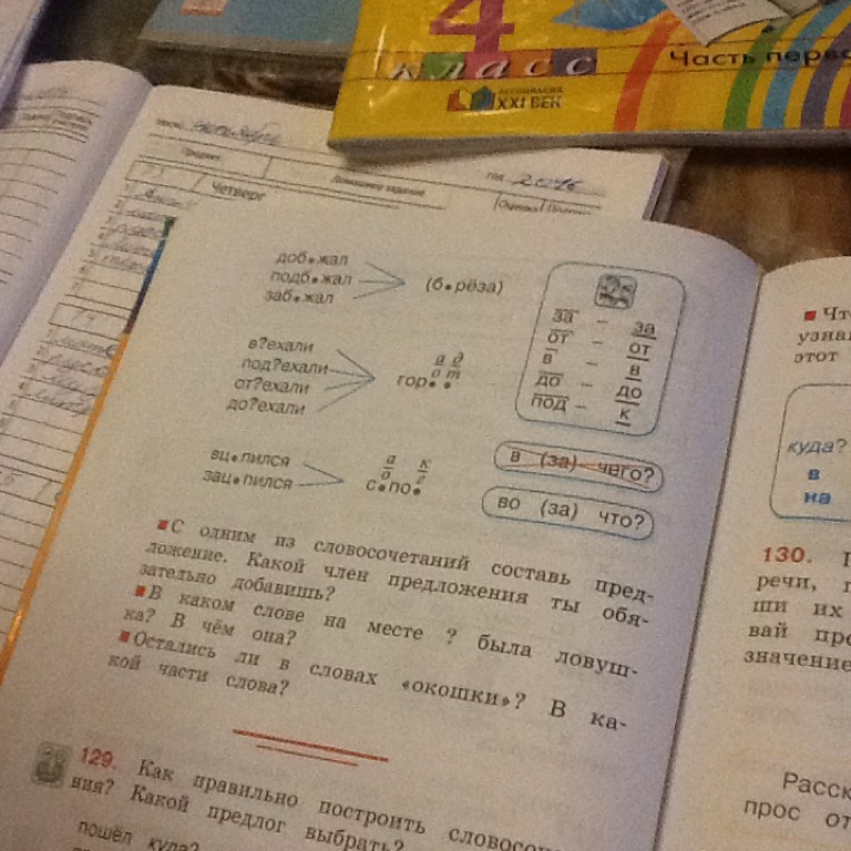 Надо к завтрашнему дню плиз номер 128 составь и запиши словосочетания. Задавай падёжные вопросы и указывай падежи, приставки выделяй а предлоги подчеркивай