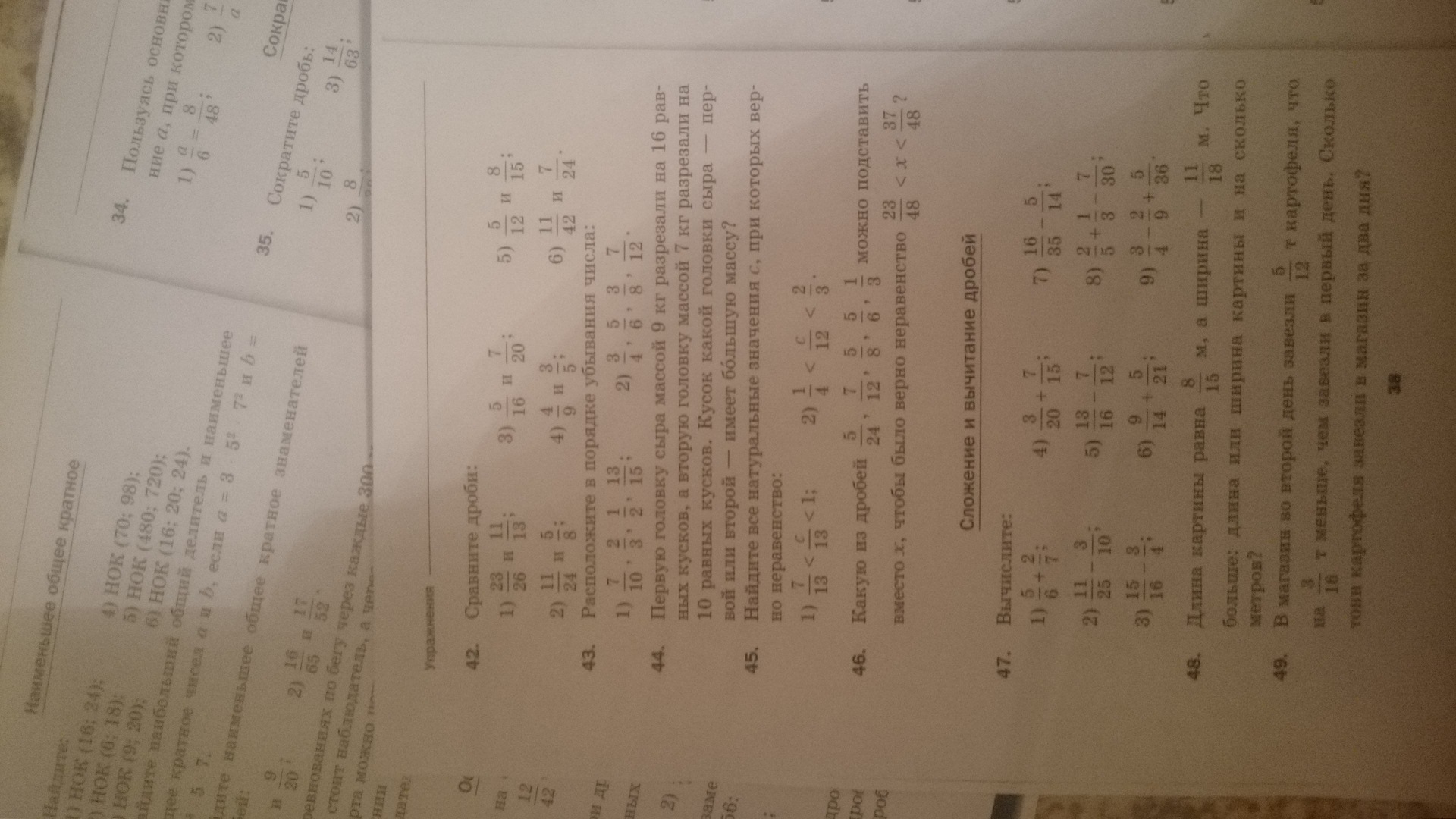 приведите к наименьшему общему знаменитую дроби 1)3/8 и 1/6 2)3/4 и 5/14 3)5/9 и 2/27 4)3/8 и 2/9 5)2/15 и 5/18 6)2/9, 3/4 и 5/12