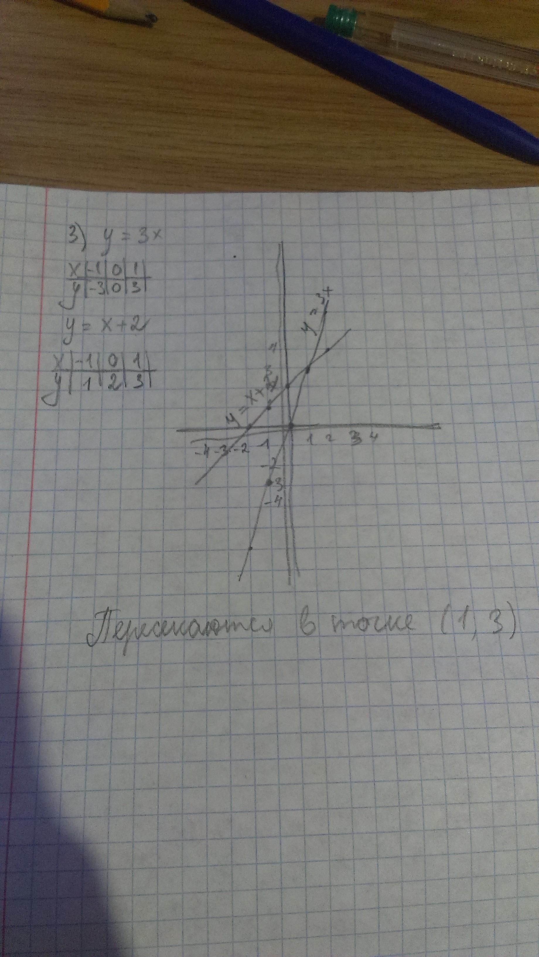 3. В какой точке пересекаются прямые y=3х и у=х+2 ?