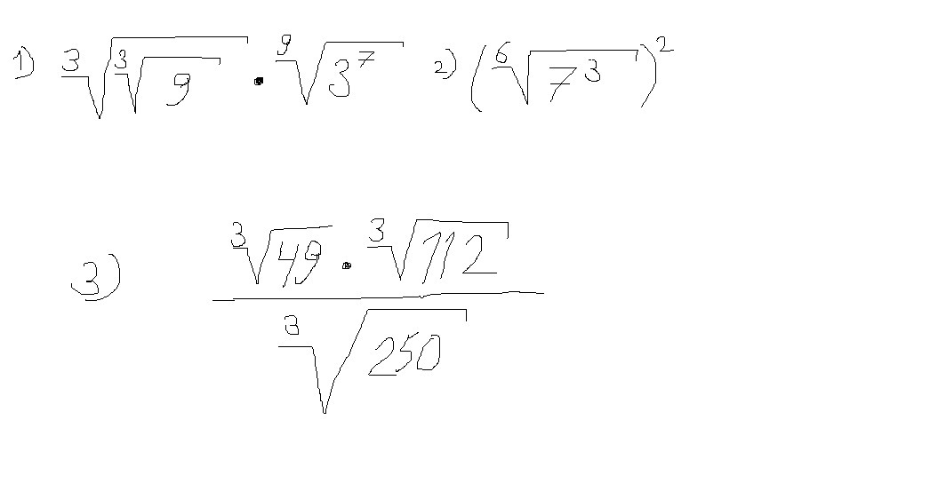 3) Квадратный корень в третьей степени из 49 умноженный на квадратный корень в третьей степени из 112 и делённый на квадратный корень в третьей степени из 205 .........∛49*∛112 / ∛250