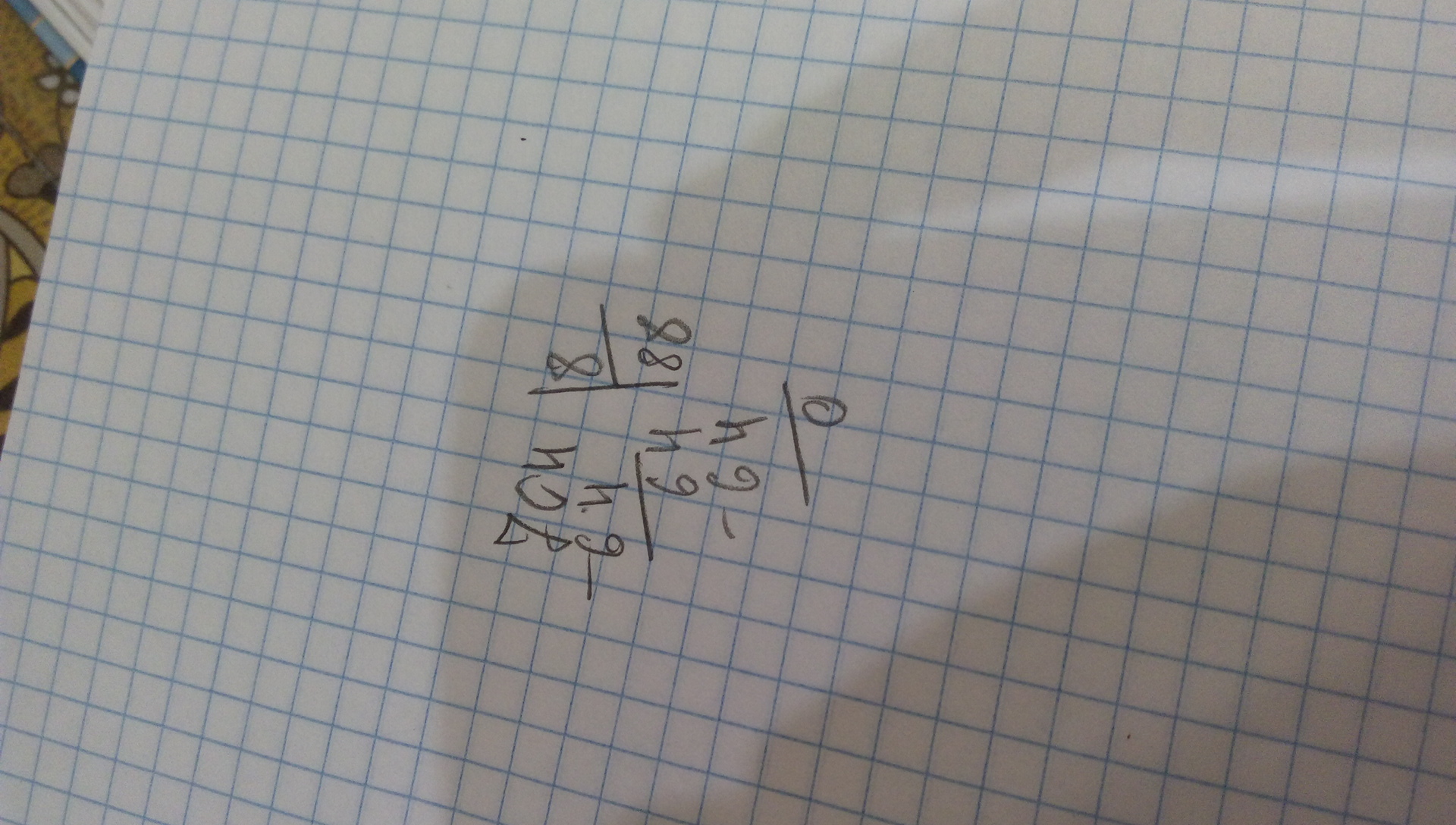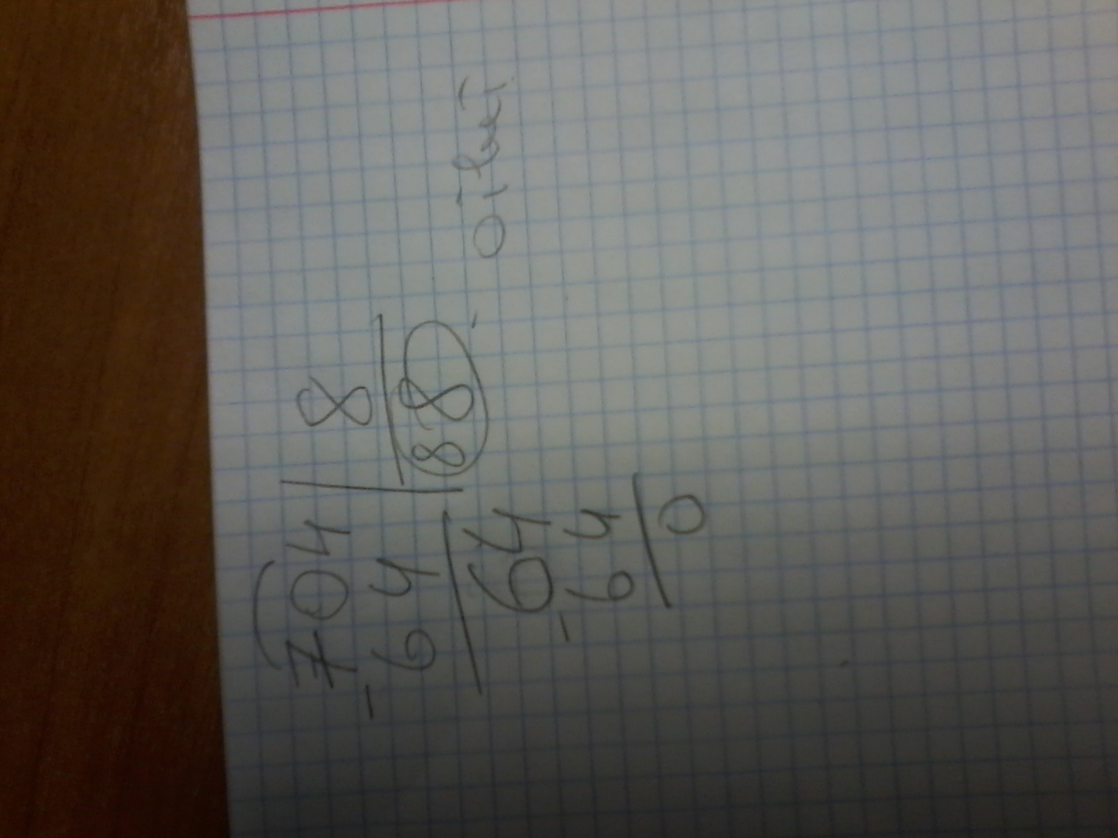 сначала берешь то число, которое делится на 8 (в данном случае), пишешь остаток и сносишь 4. Получится, что 64 надо разделить на 8.