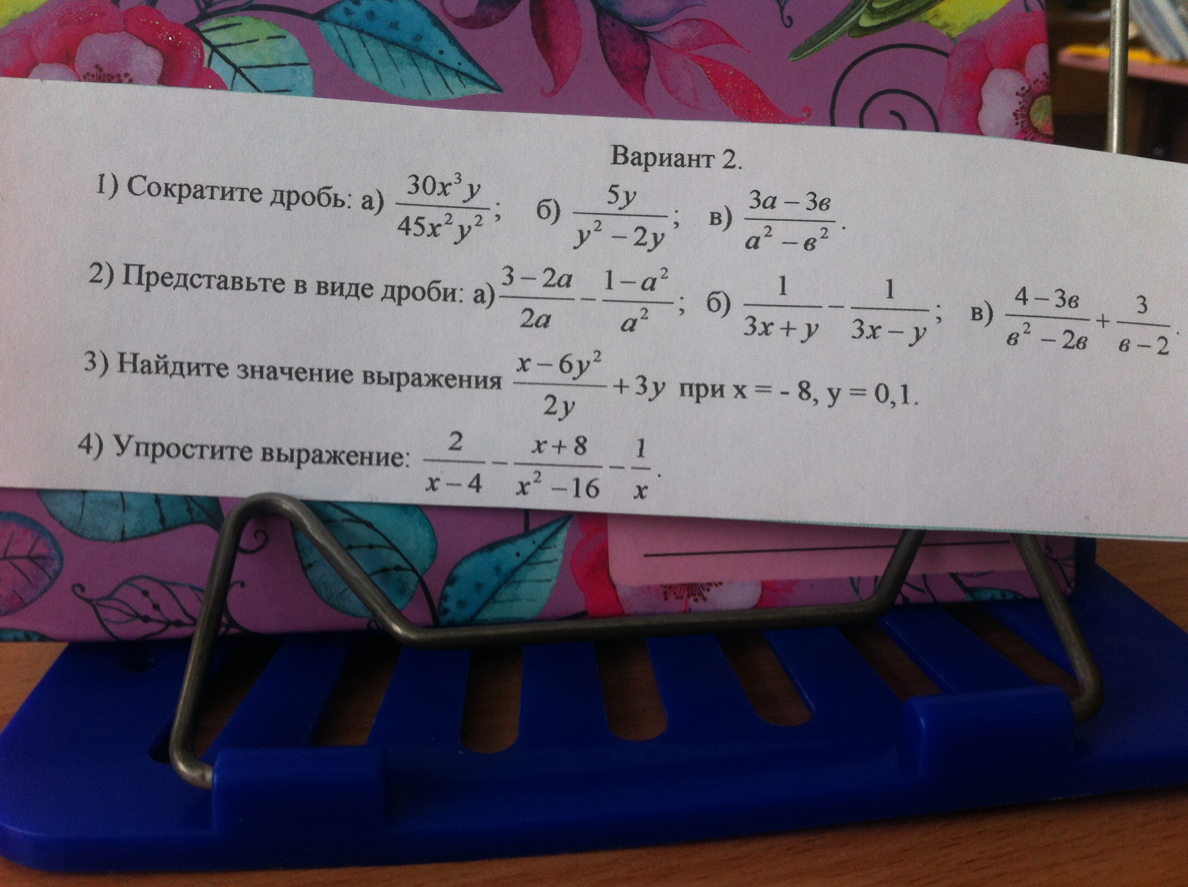 3) (x - 6y^2) / 2y + 3y = (x - 6y^2) / 2y + 3y * 2y / 2y = (x - 6y^2 + 6y^2) / 2y = x / 2y = (- 8) / 2 * 0.1 = - 8 / 0.2 = - 40