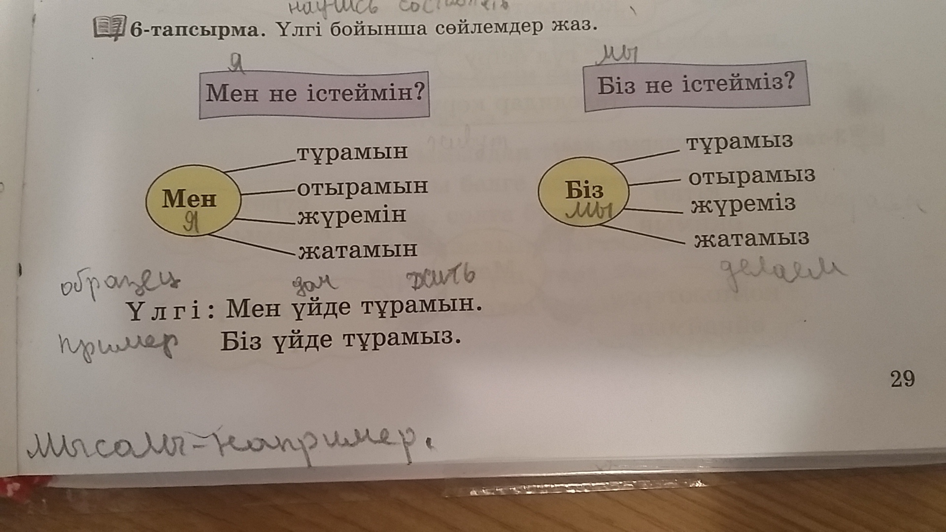Мен төсекте жатамын. Біз төсекте жатамыз