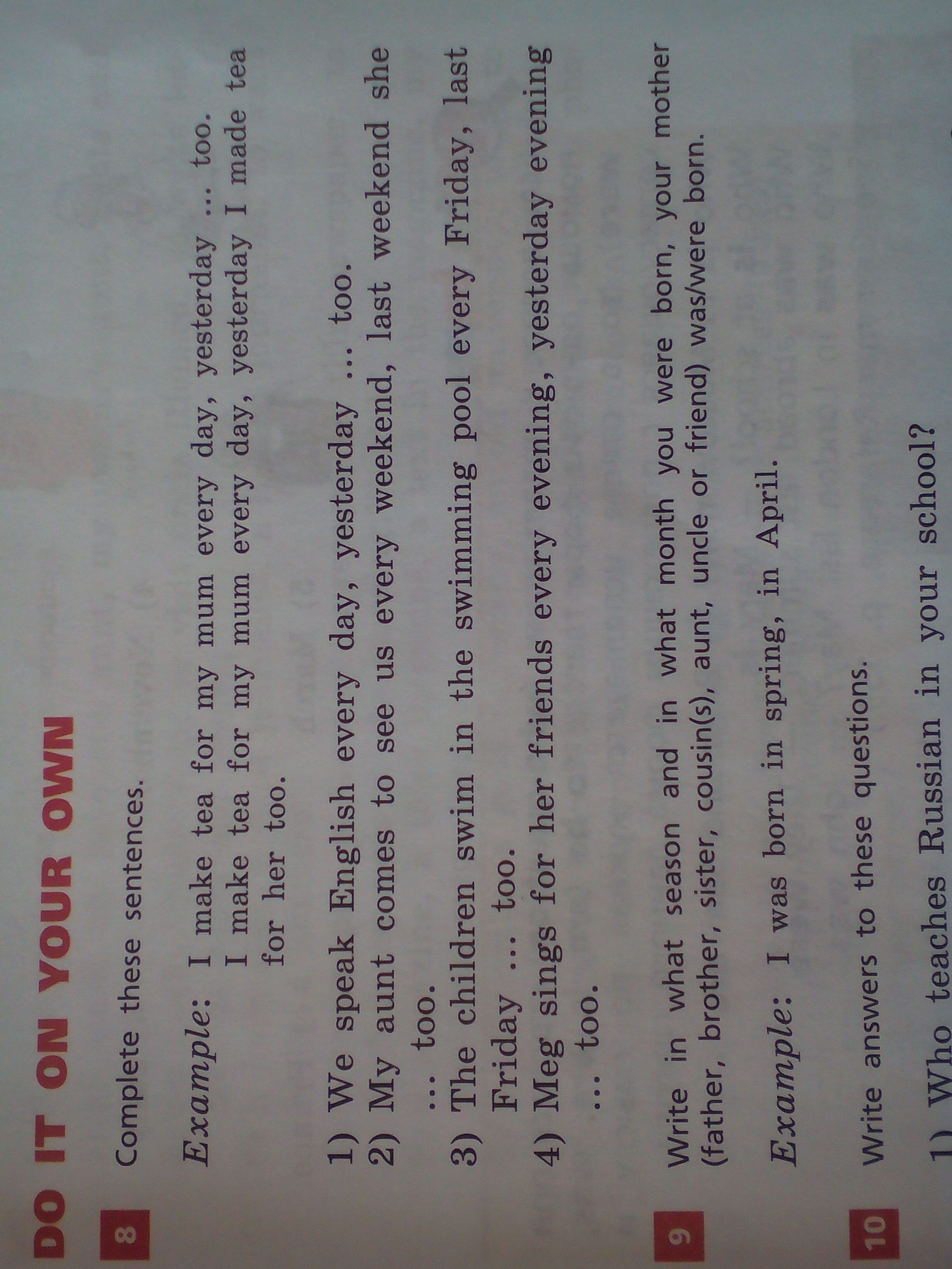 3. The children swim in a swimming pool every Friday, last Friday they swam too.