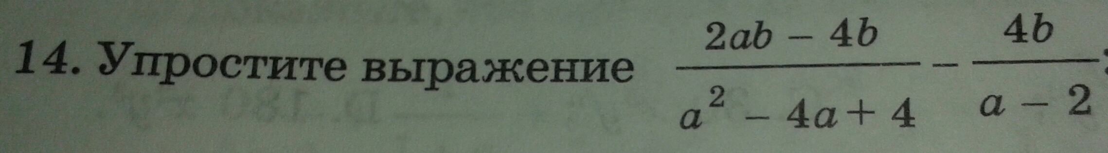 (2ab-4b)/( a^2-4ab+4) - 4b/(a-2) = 2b(a-2)/(a-2)^2 - 4b/(a-2)=2b/(a-2) -4b/(a-2) = 2b/(a-2)