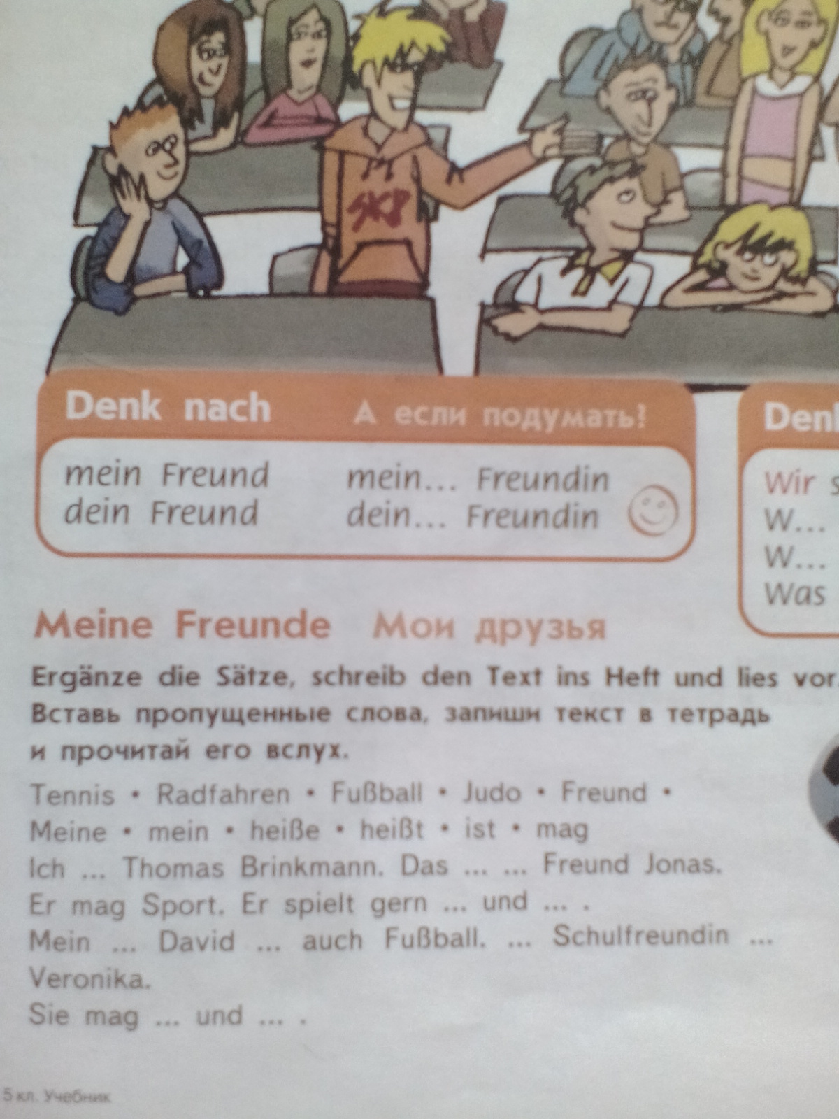 Ich heiße Thomas Brinkmann. Das ist mein Freund Jonas. Er mag Sport. Er spielt gern Fußball und Tennis. Mein Freund David mag auch Fußball. Meine Schulfreundin heißt Veronika. Sie mag Radfahren und Judo.