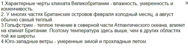 3. The Gulf stream is a warm stream in the North Atlantic Ocean, affects the British climate. That`s why the temperature is higher in Britain than in other areas of the same latitude.