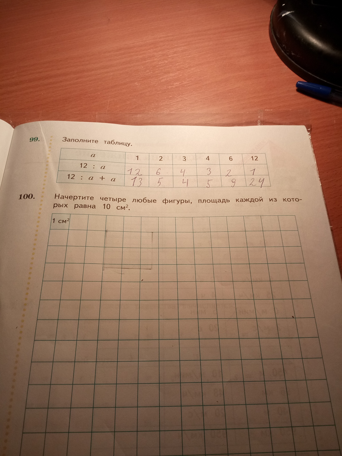 Начертите четыре любые фигуры площадь каждой из которого равна 10 сантиметров
