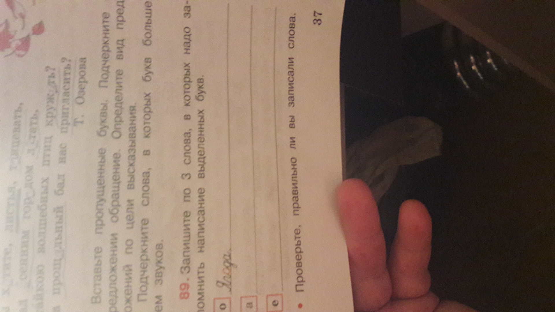 Запишите по три слова , в которых надо запомнить написание выделенных букв О -Ягода ,?,? ...А-??? , Е-???