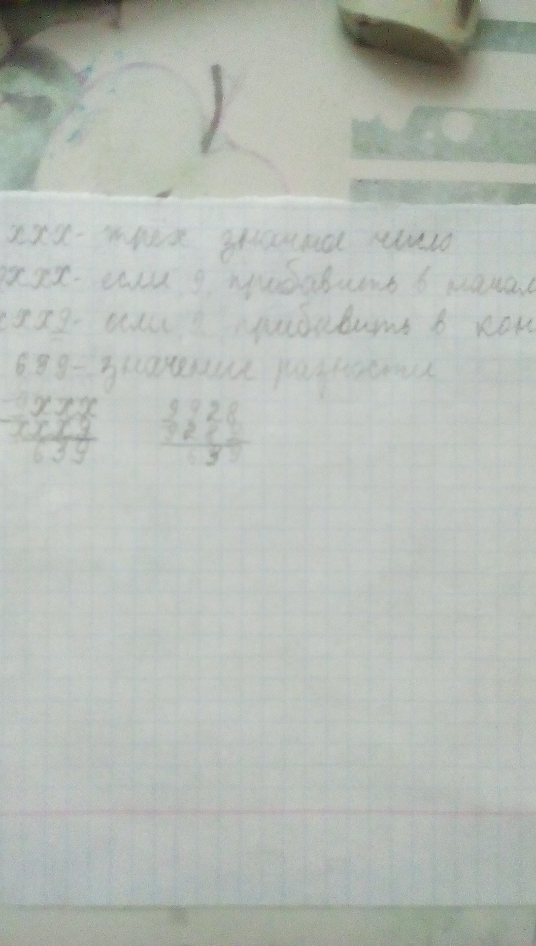 К трёх значному числу приписали цифру 9 сначала слева а потом с права получили 2 четерехзначных числа разность которых равна 639найдите трёх значное число