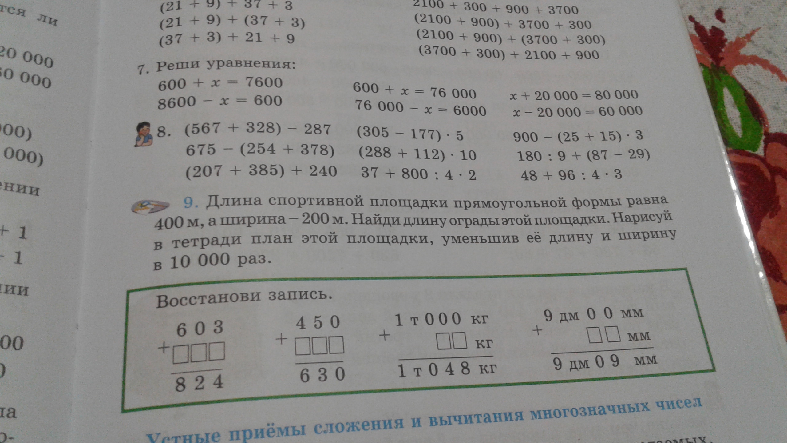 длина спортивной площадки прямоугольной формы равна 400 метров а ширина 200 метров Найдите длину ограды этой площадки нарисуй в тетради план этой площадке уменьшили в длину и ширину 10000 раз