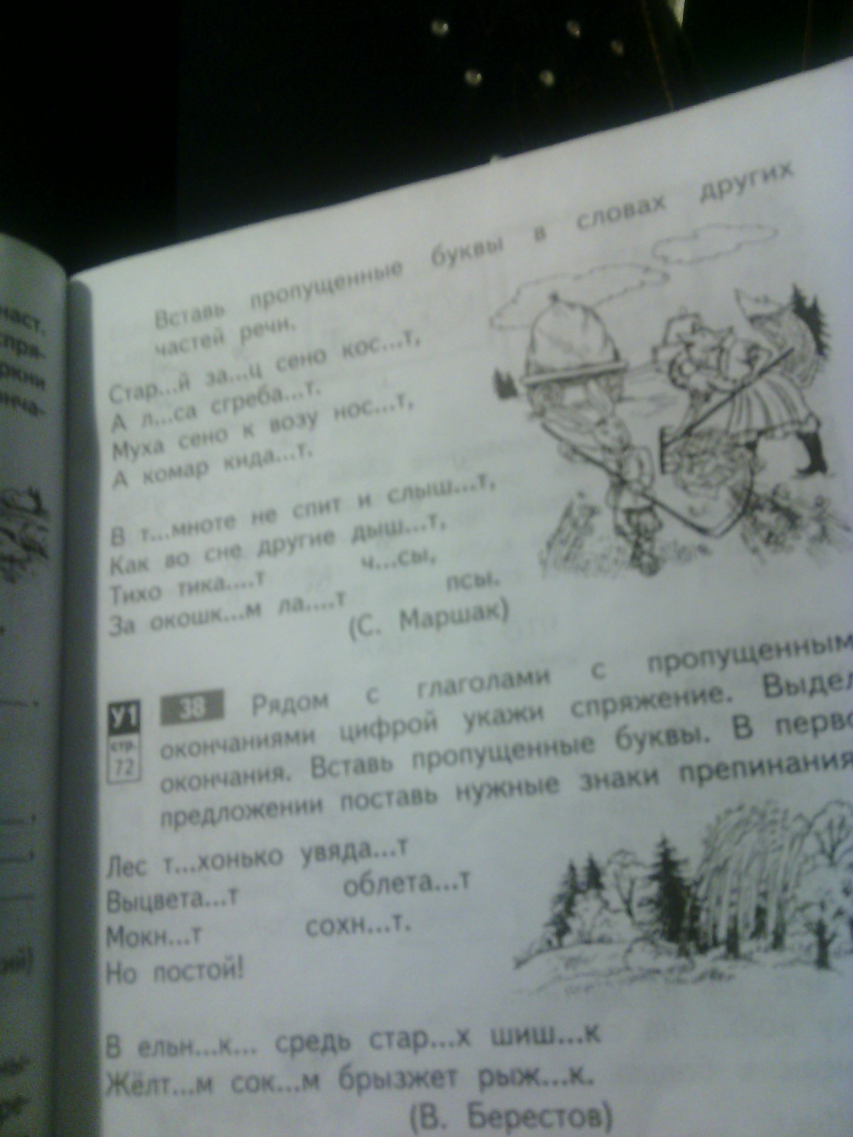 Старый заяц сено косит, а лиса сгребает.