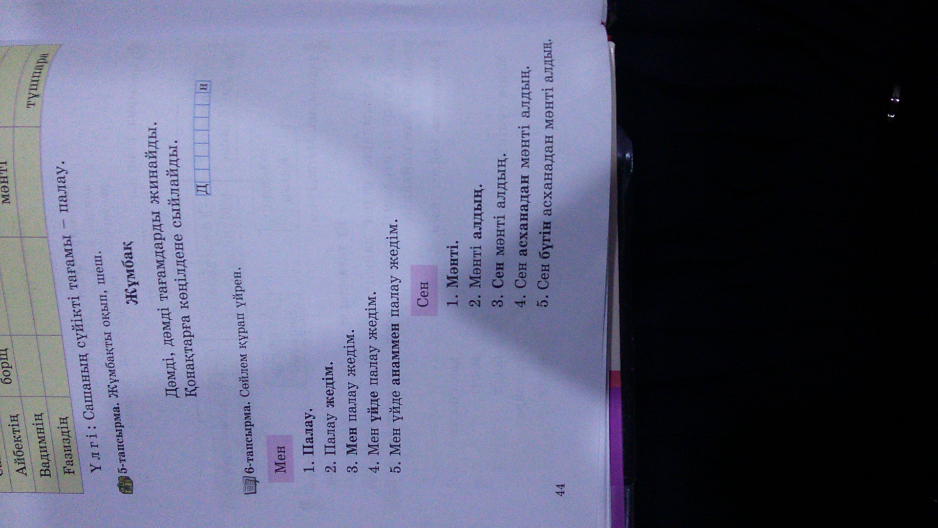 2.Сен бугин асханада манты алдын