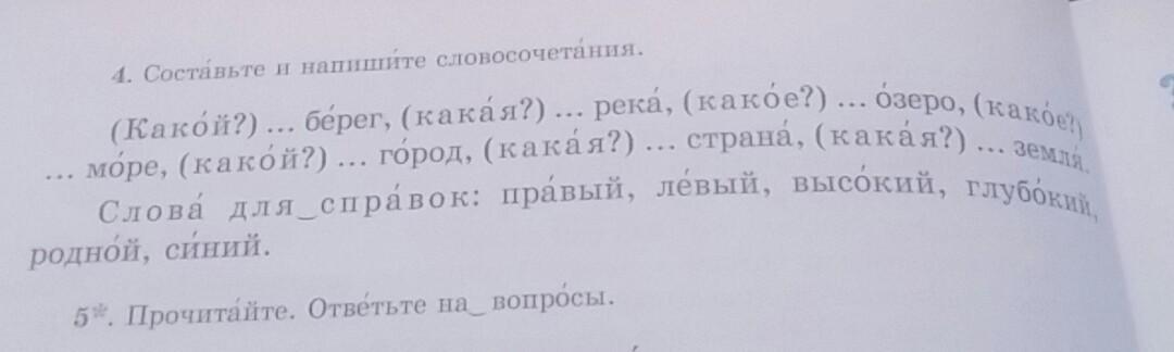 Слова для справок: правый, левый,высокий,глубокий, родной, синий.