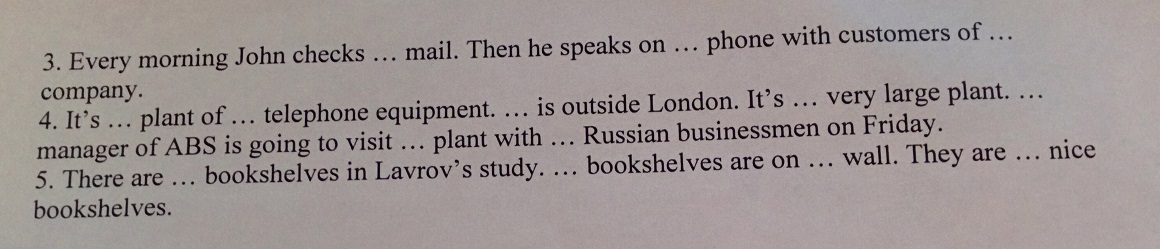 4 a plant, --- telephone, ---is, a large, the manager, the plant, a Russian
