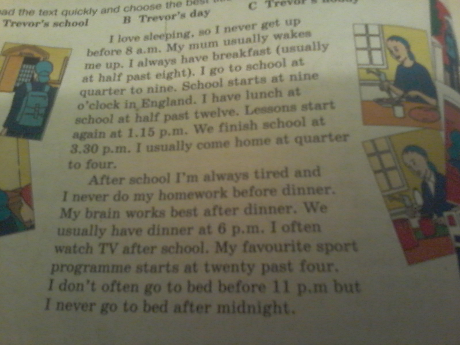 Trevor never gets up before 8 am, so his mum usually wakes him up.