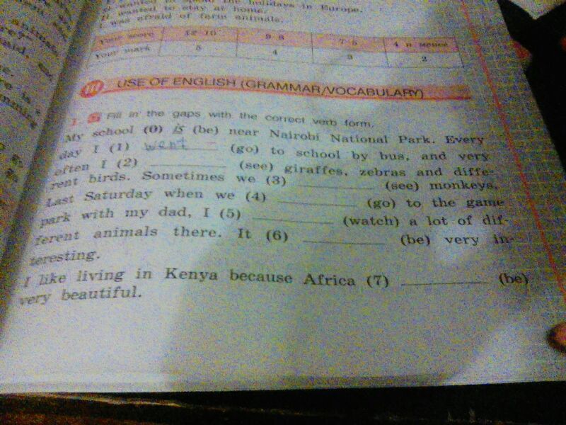 Every day i go to school.....and very often i see giraffes..........Sometimes we see monkays,last Saturday we went to the game park,with my dad.I watched ...........It was very interesting.......because Africa is very beatiful.