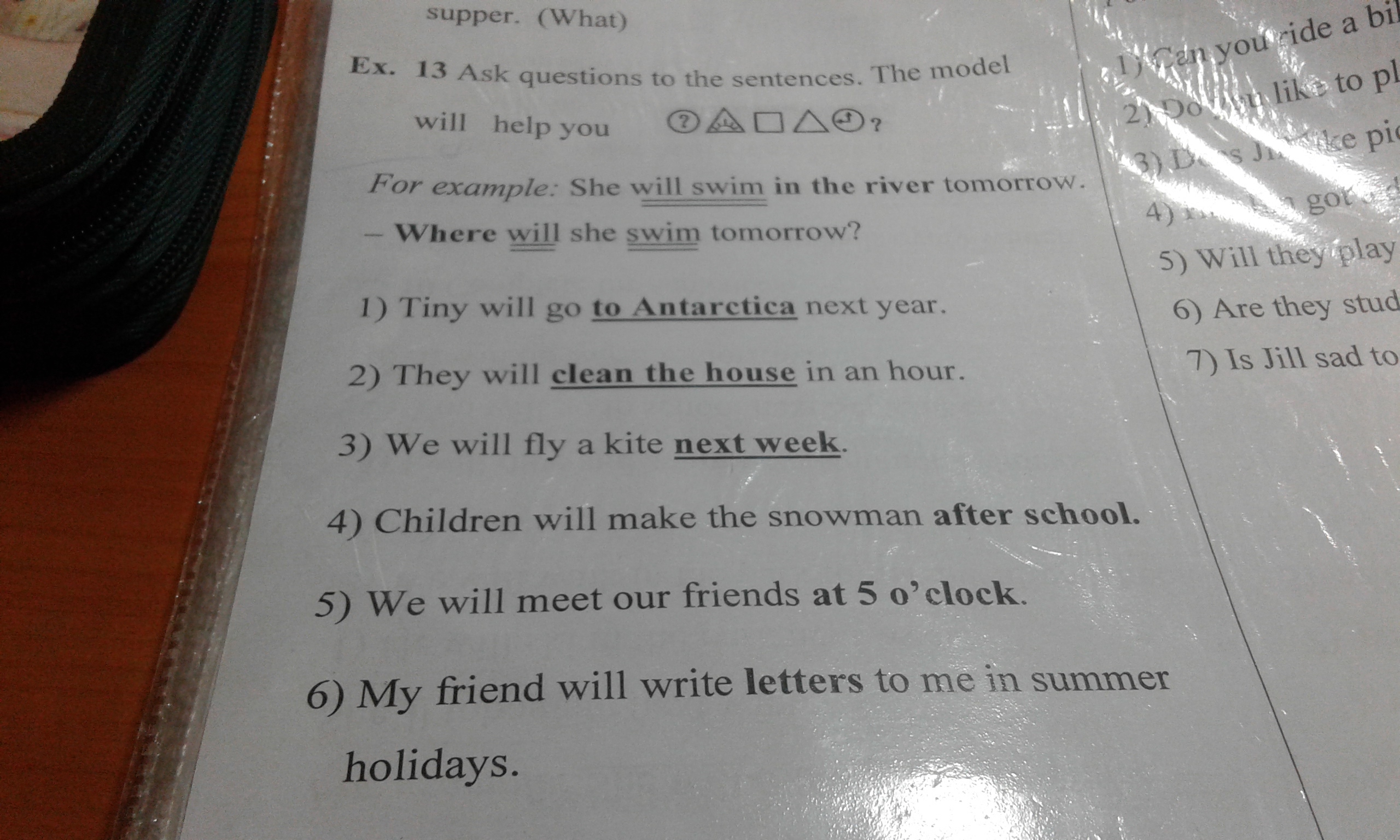 Не множко не поняла суть задания... надо задать вопросы с wi llк предложениям?