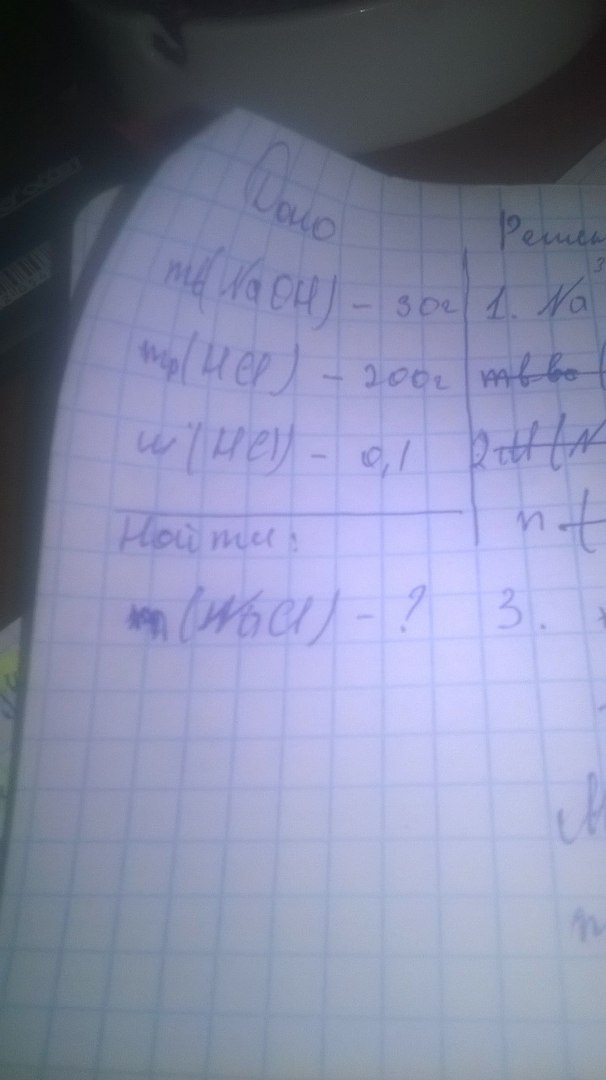 Какая масса NaCl образовалась 30 гр NaOH c 200 гр 10% раствора HCl