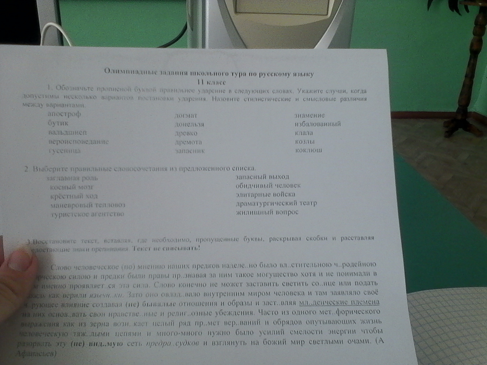апОстроф, бутИк, вальдшнЕп, вероисповедАние, гУсеница, догмАт, донЕльзя, дрЕвко, дремОта, запАсник, знамЕние, избалОванный, клалА, кОзлы, козлЫ, коклюш