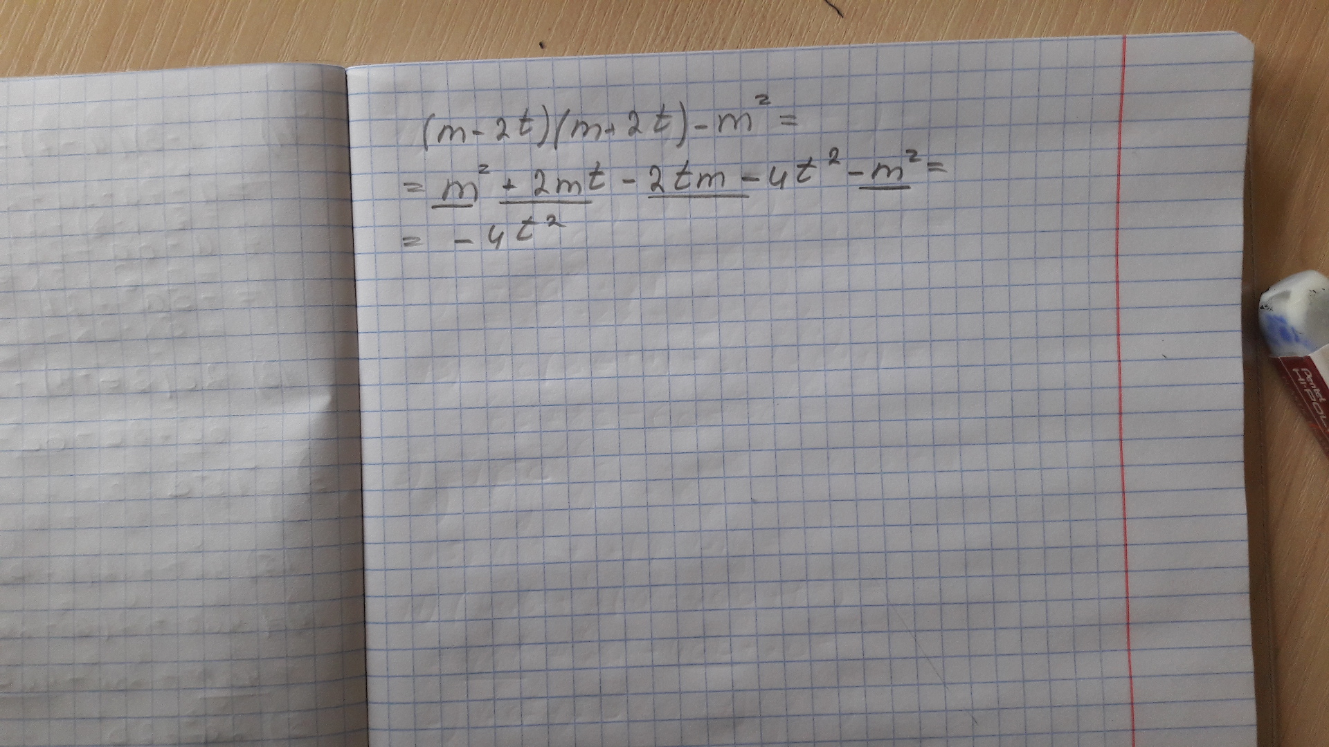 Упростите выражение (m-2t)(m+2t)-m(в квадрате) желательно как решается