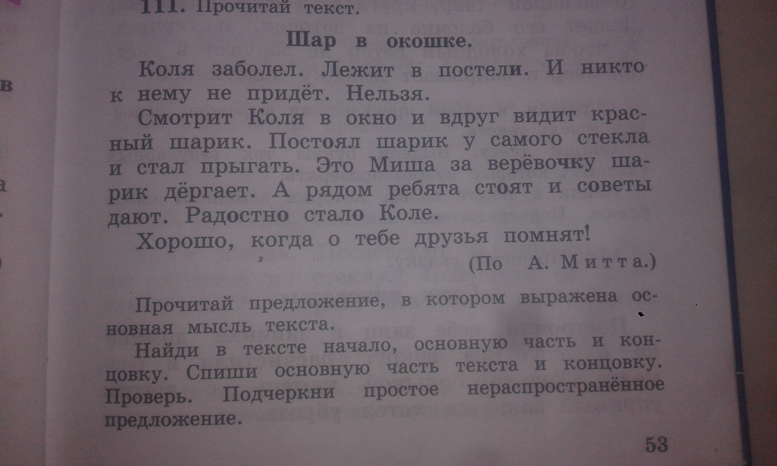 текст шар в окошке 3 класс . спеши основную часть текста и концовку. проверь .подчеркни простое нераспространенное предложения