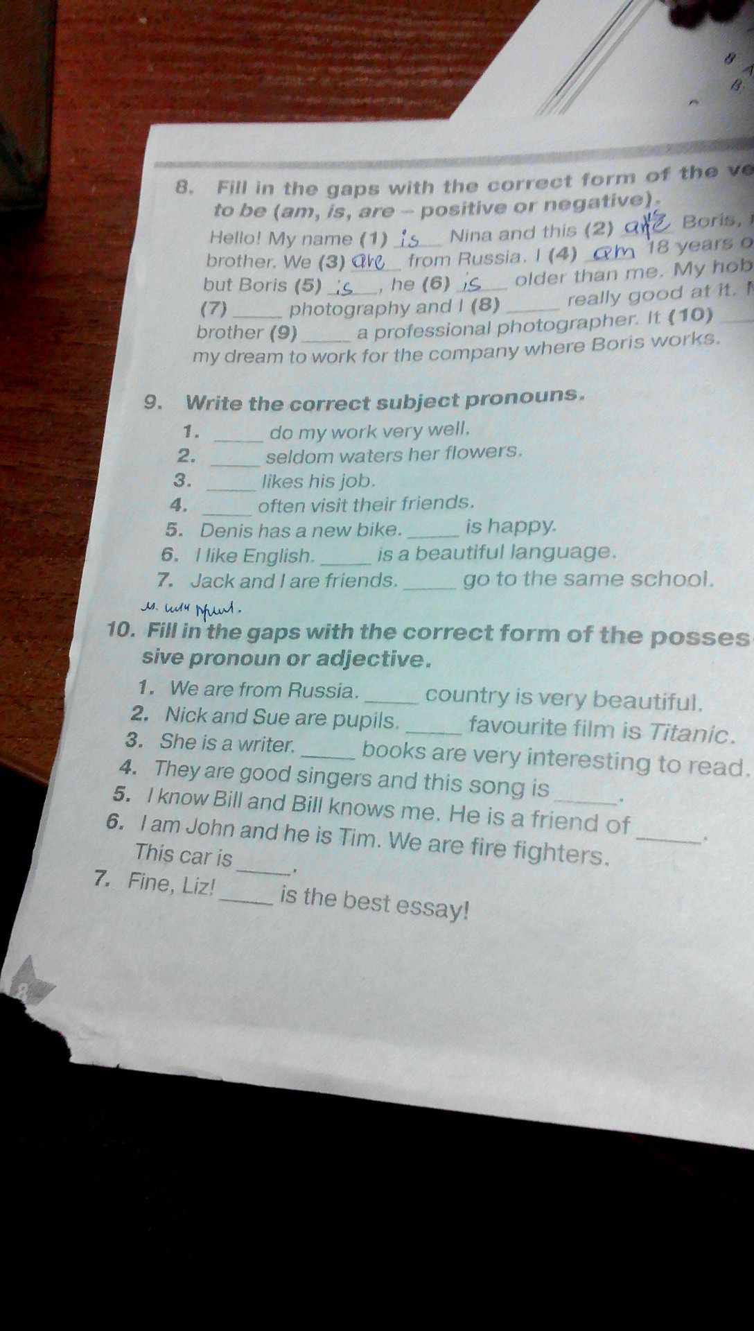 10. 1. Our. 2. Their. 3. Her. 4. Theirs. 5. Mine. 6. Ours. 7. It.