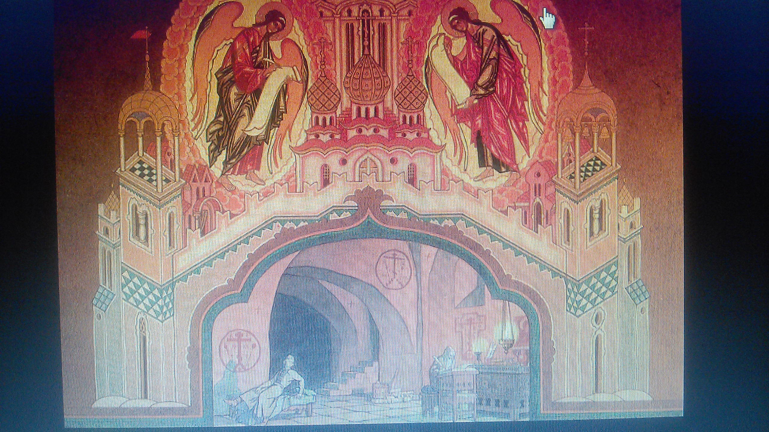 Внимательно рассмотри эскиз декорации "Келья в Чудовом монастыре", помимо Пимена, изображён художником? Какова роль этого персонажа в дальнейшем развитии оперы Мусоргского?
