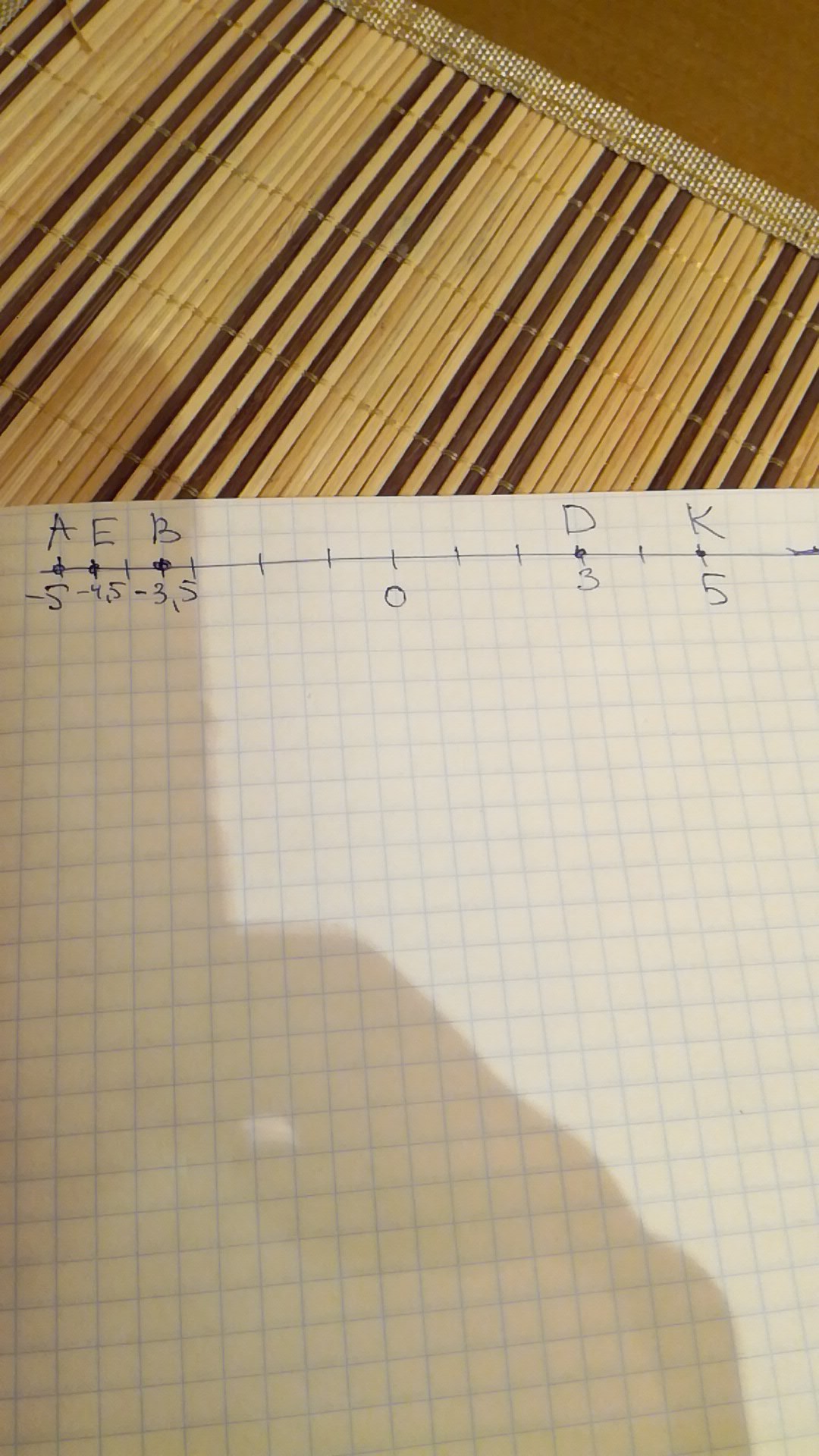 Начертите в тетради координатную прямую.За единичный отрезок примите длину двух тетрадных клеток (1 см). Изобразите на координатной прямой точки:А (-5),В (-3,5),С(-2),D(3).Е(-4,5)и К (5). Помогите срочно дам 94 балла