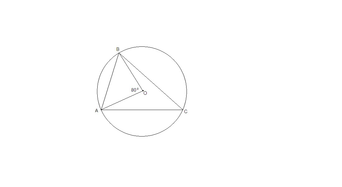 ∠АСВ = 1/2 ∠АОВ = 1/2 · 80° = 40° так как вписанный угол равен половине центрального, опирающегося на ту же дугу.