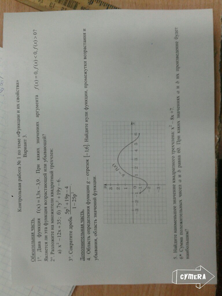 убывает от -1 до 0 и от 3 до 6