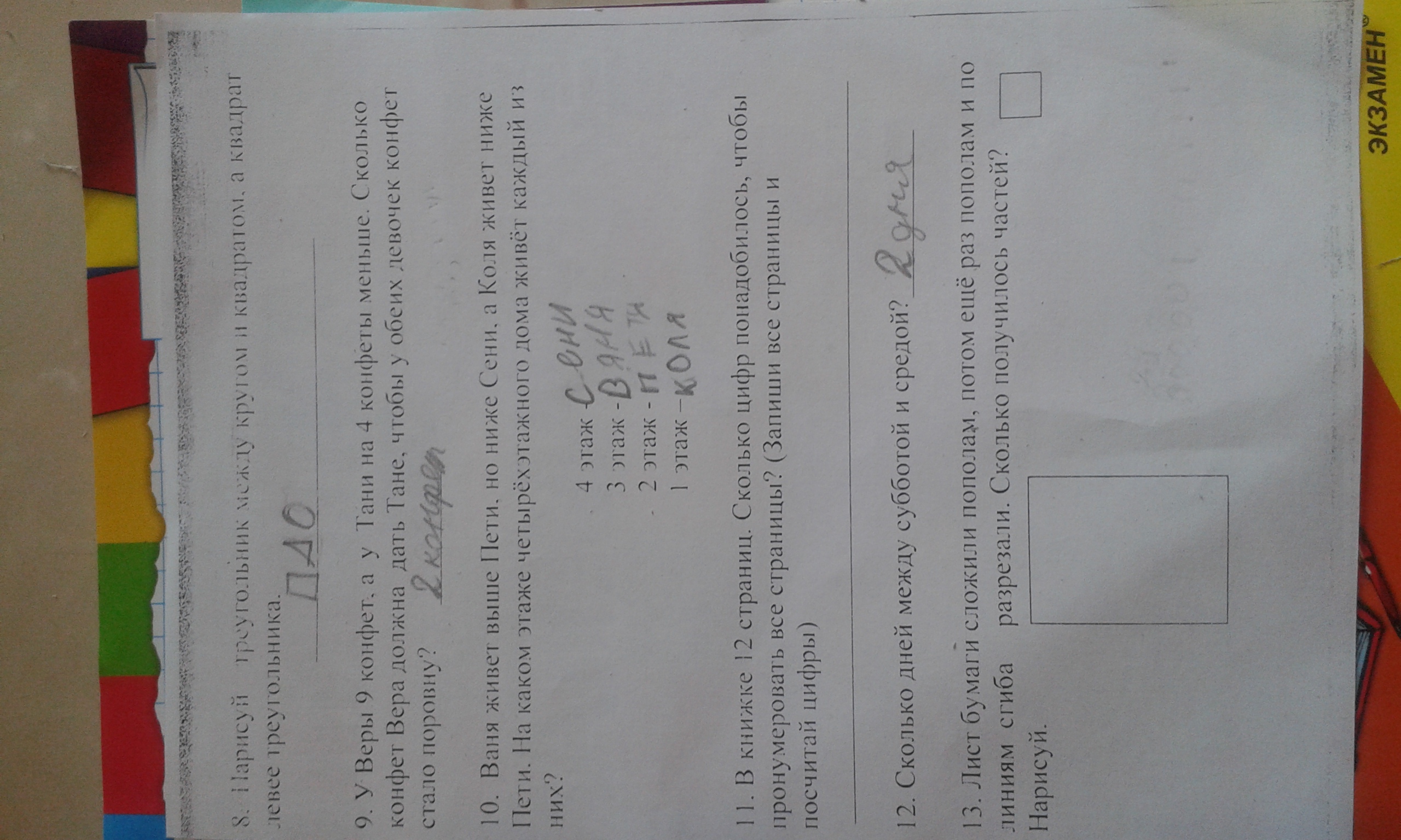 В 13 задании частей получилось четыре. Нарисуй две линии, как бы плюсиком.