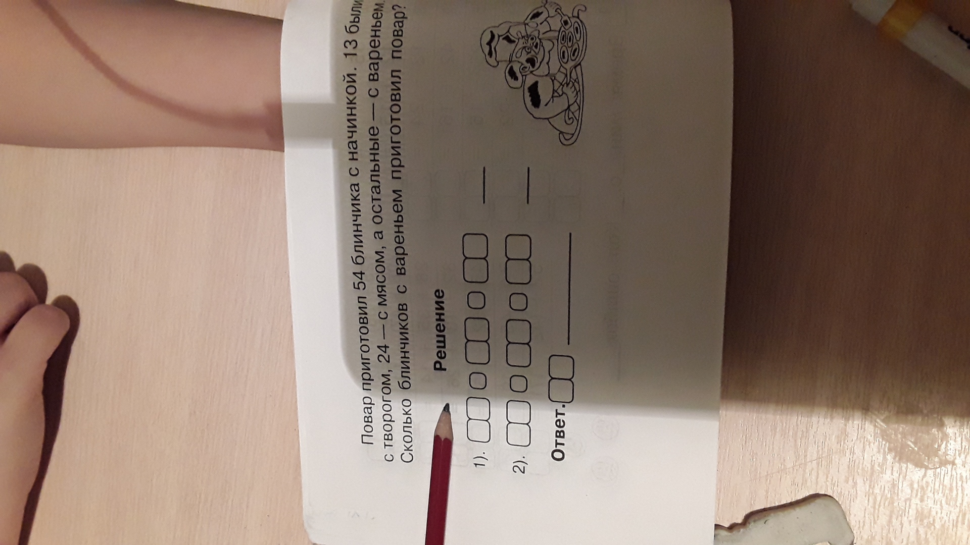 повар приготовил 54 блинчика с начинкой 13 были с творогом 24 с мясом остальные с вареньем сколько блинчиков с вареньем приготовил повар ПОМОГИТЕ ПОЖАЛУЙСТА СЕЙЧАС