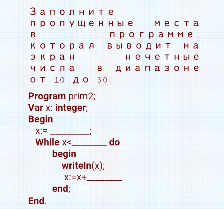 While x<31 do "Выполнять до тех пор пока число будет не больше 31"