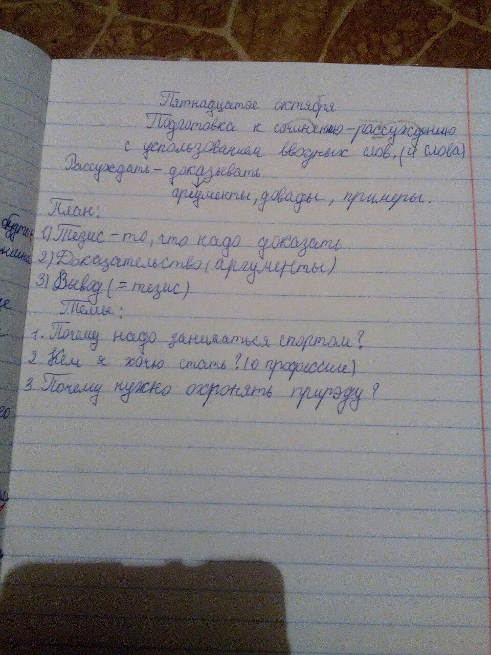- Вывод — часть, в которой ещё раз подтверждается тезис.