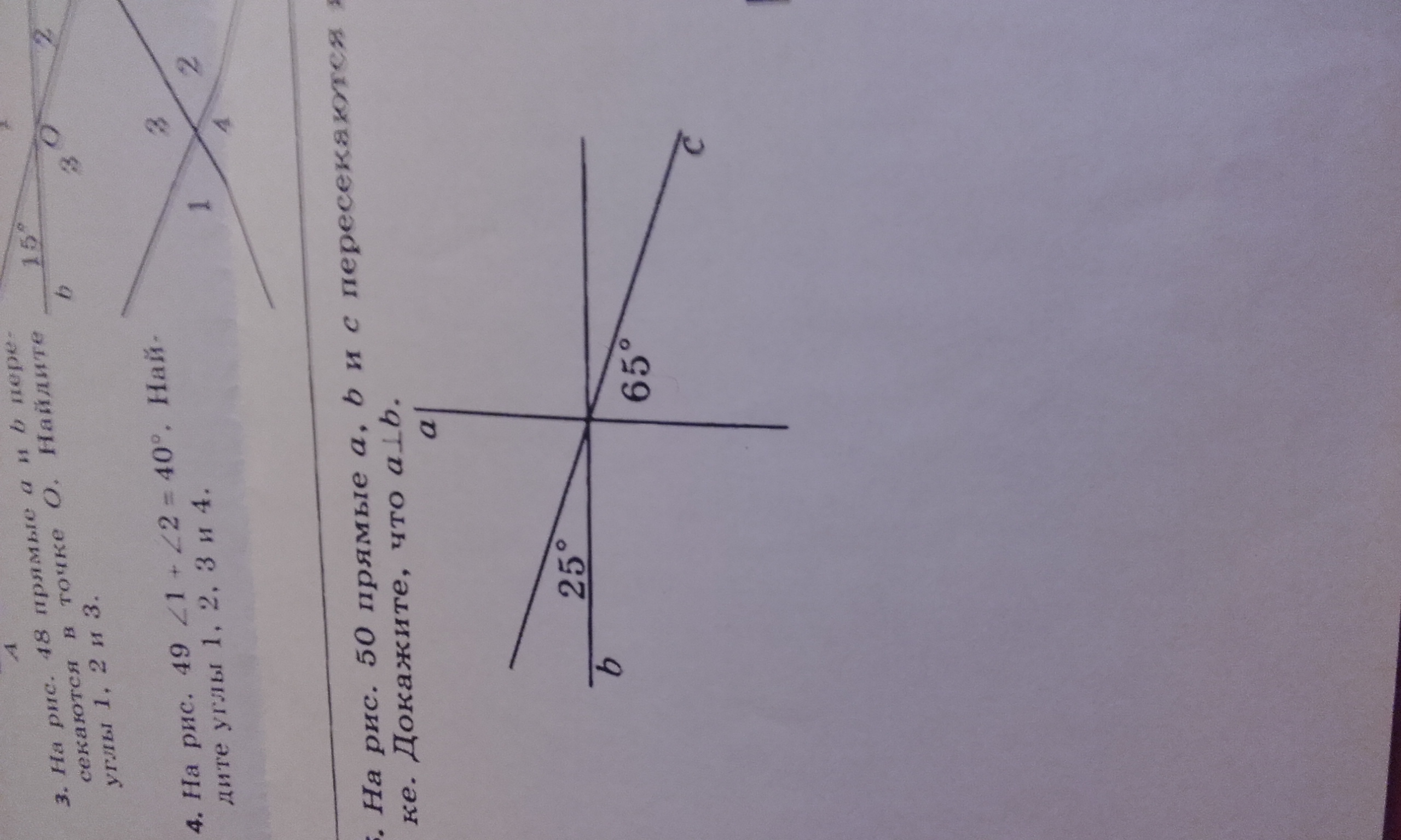 На рис. 50 прямые a, b и c пересекаются в одной точке. Докажите, что а перпендекляоно b