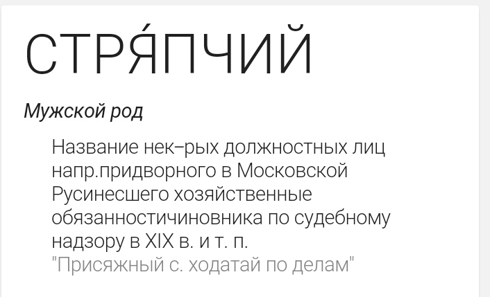 Стряпчий - так в старину называли адвоката. (С) В словаре Даля стрыпчий - повра, кашевар в артели (дон. тамб.); поверенный в делах, ходок по судам.