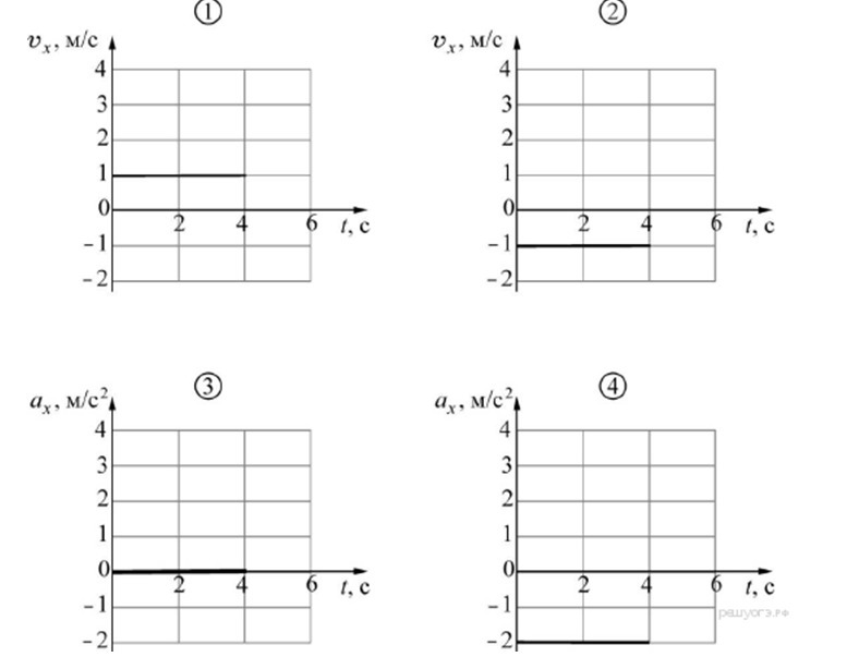 На следующих рисунках изображены графики зависимостей от времени проекции скорости vx и проекции ускорения ax:
