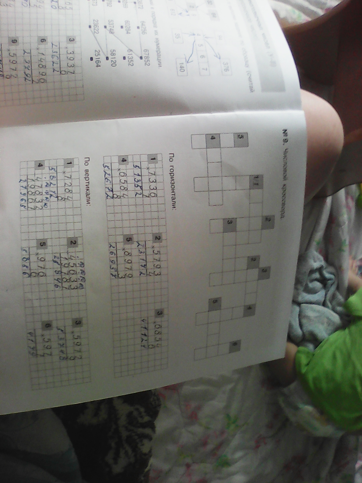 Ты решила уже все примеры, осталось записать ответы в клеточки, вертикаль- сверху вниз