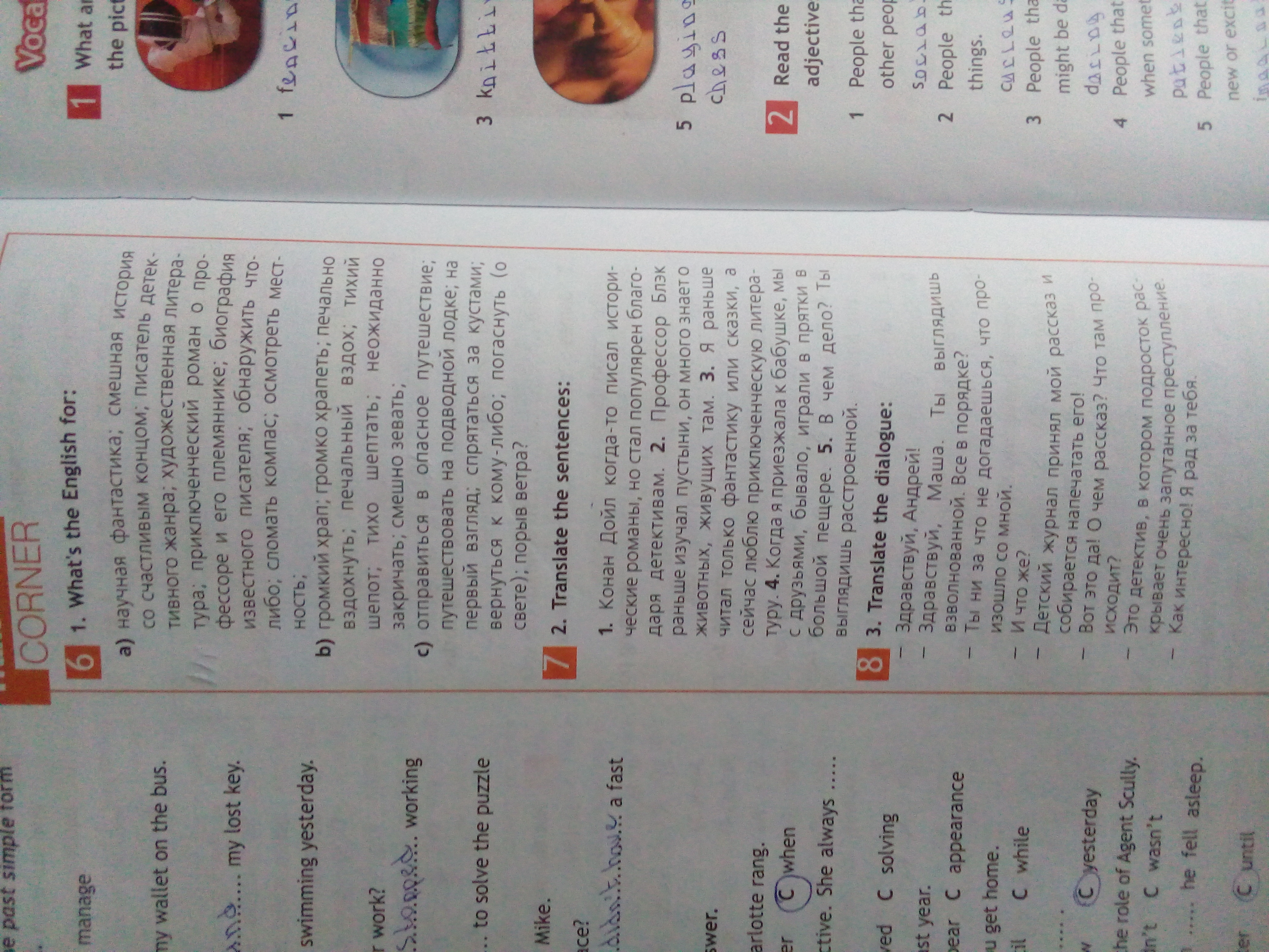 1. Konan Doil used to write romantic stories, but became popular thanks to detectives. 2. Profesor Black used to reasearch deserts, he knows alot about the animals that live there. 4. when i came to my grandmas, me and my friends, sometimes played hide and seek in a big cave. 5. Whats the matter? You look sad.