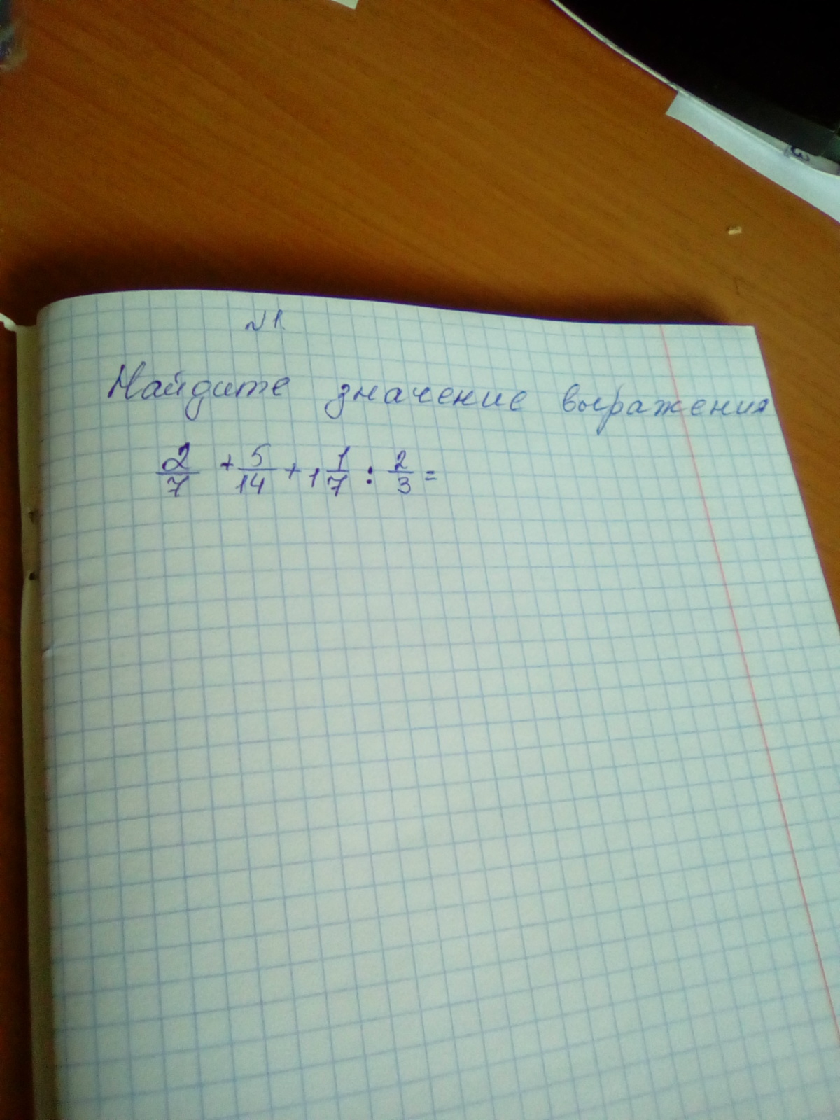 найдите значение Выражения 2/7+5/14+1 1/7:2/3