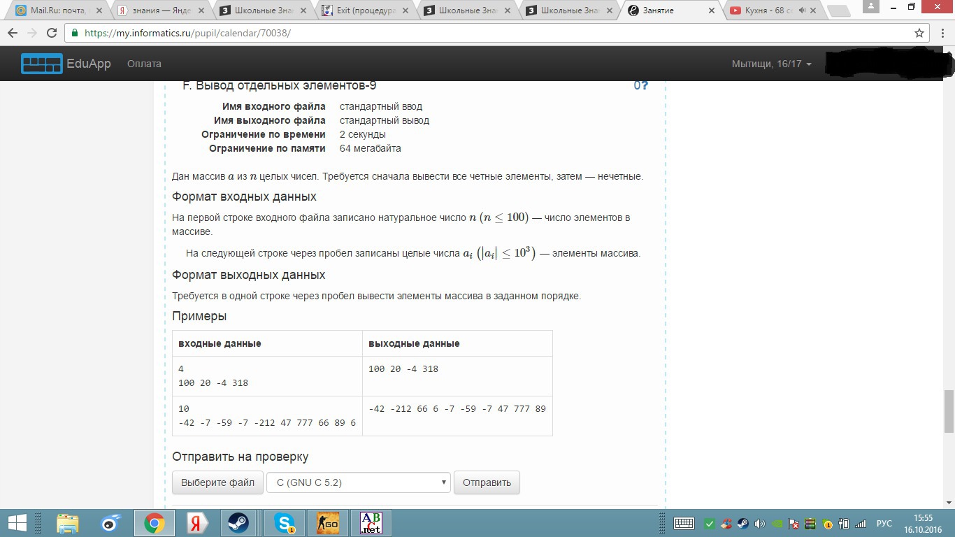 for i := 1 to n do if(a[i] mod 2 = 0) then write(a[i], ' ');
