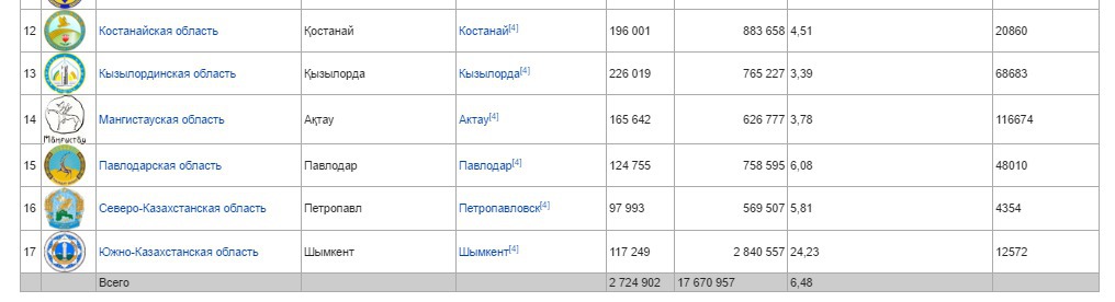 Общая численность населения Казахстана по данным на 1 сентября 2016 года составляет 17 853 200 человек. Занимает 63-е место в списке стран по численности населения. Средняя плотность чуть более 6,51 человек на км² (184-е место в списке стран по плотности населения).