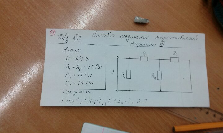 Срочно!!Для электрической схемы заданы значения сопротивлений резисторов r1=r2=25 ом, r3=15 ом, r4=75 ом. И входное напряжение uИ входное напряжение u=105 B