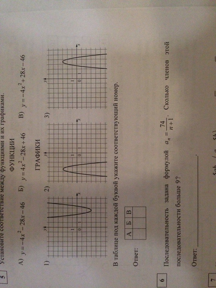 Ребят,помогите установить соответствие между функциями и их графиками,кому не сложно напишите подробно решение и объясните,спасибо