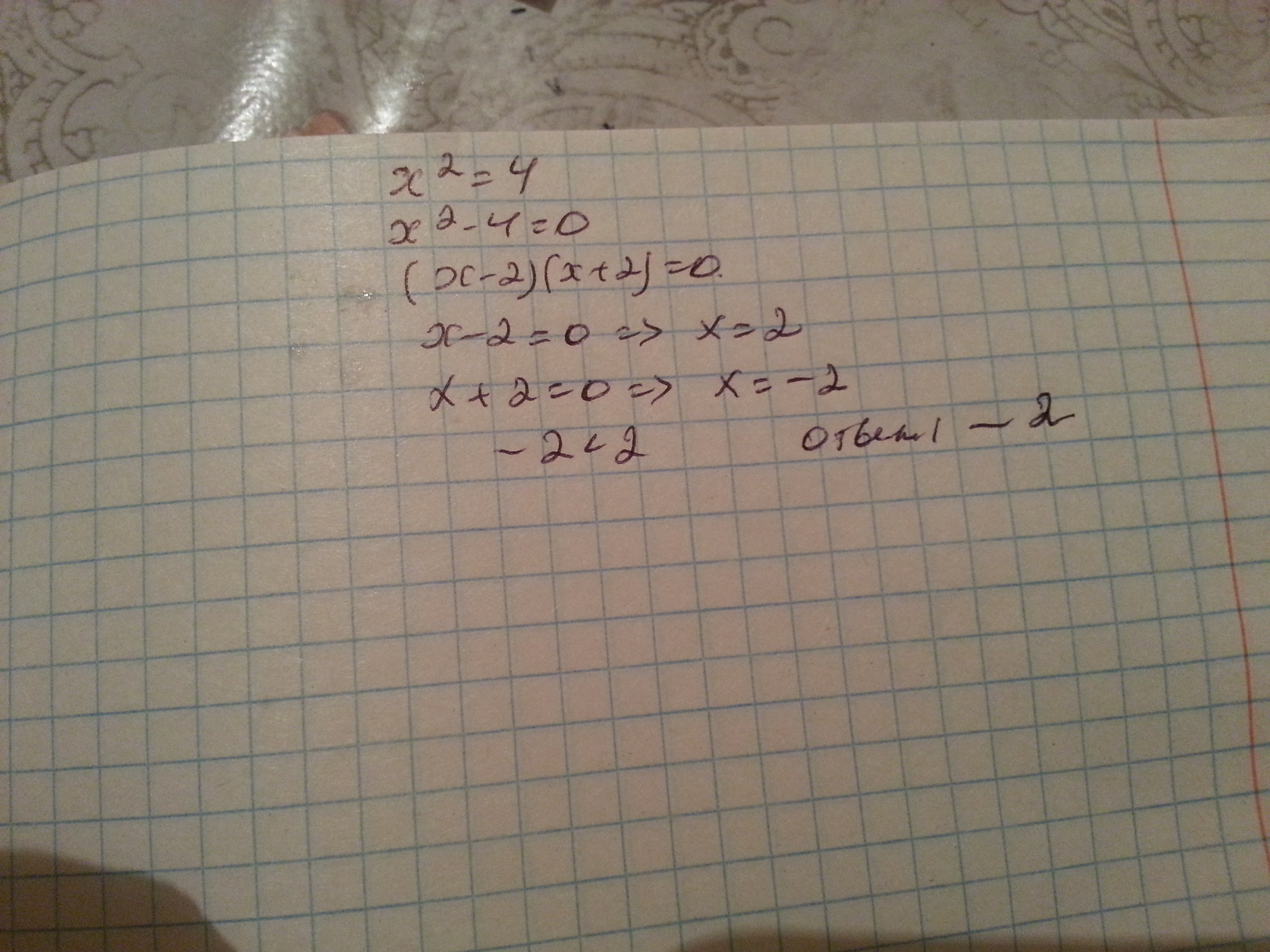 решите уравнение x²=4. если уравнение имеет более одного корня, в ответ запишите меньший из корней.