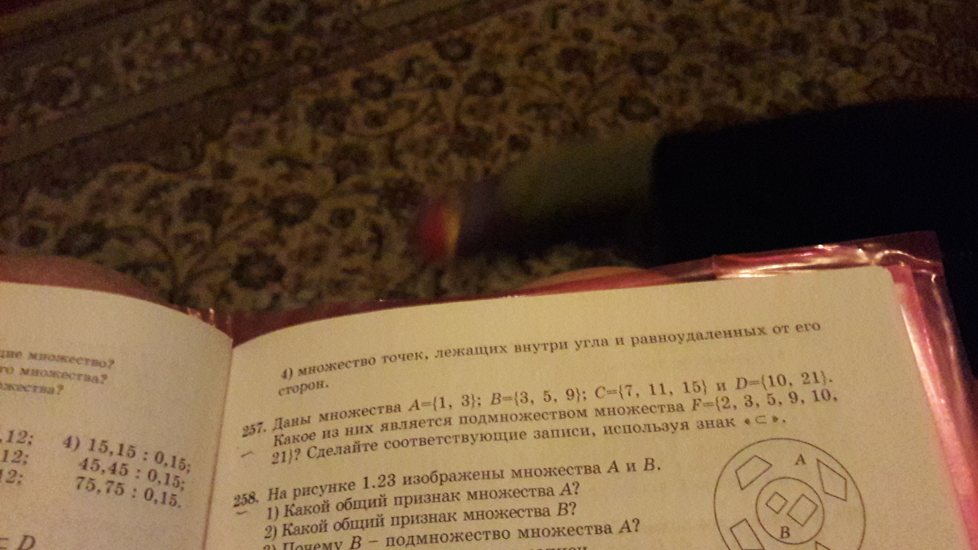 на рисунке 1.23 изображены А и В . 1) какой общий признак множества А? 2) какой общий признак множества В? 3) почемуВ- подмножество множества А? используйте обозначения при записи.