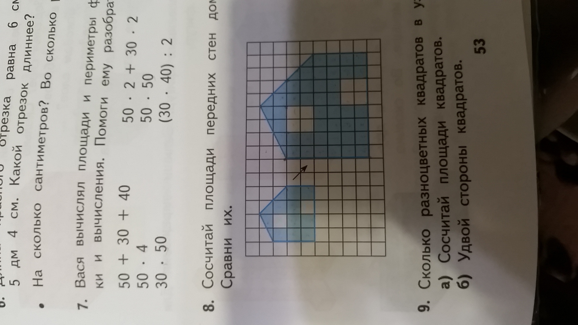 сосчитай площади передних стен домов (без окон и дверей). Сравни их. Подробно напишите как нашли площадь???