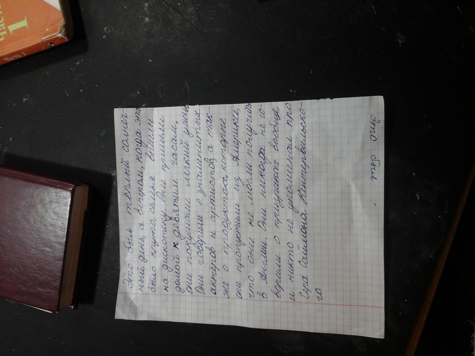 Это был теплый и солнечный день, и в вечер, когда было прохладно, семья уехала на машине. Они пришли домой в девять часов, и сели за легкий ужин. Они говорили об известных актрисах и актерах, о продуктах, которые они привезли из Америки, которые никак не могли попасть в Англию. Они не говорили о призраках вообще. и никто не упомянул о сэре Саймон Кентервиль.