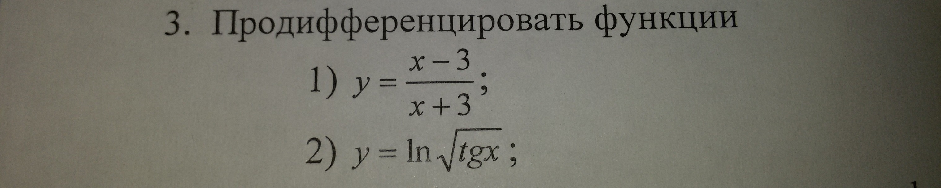 у`=(x-3 /x+3)`=(x-3)`*(x+3)- (x-3)*(x+3)`) / (x+3)²= x+3-x+3) / (x+3)²=